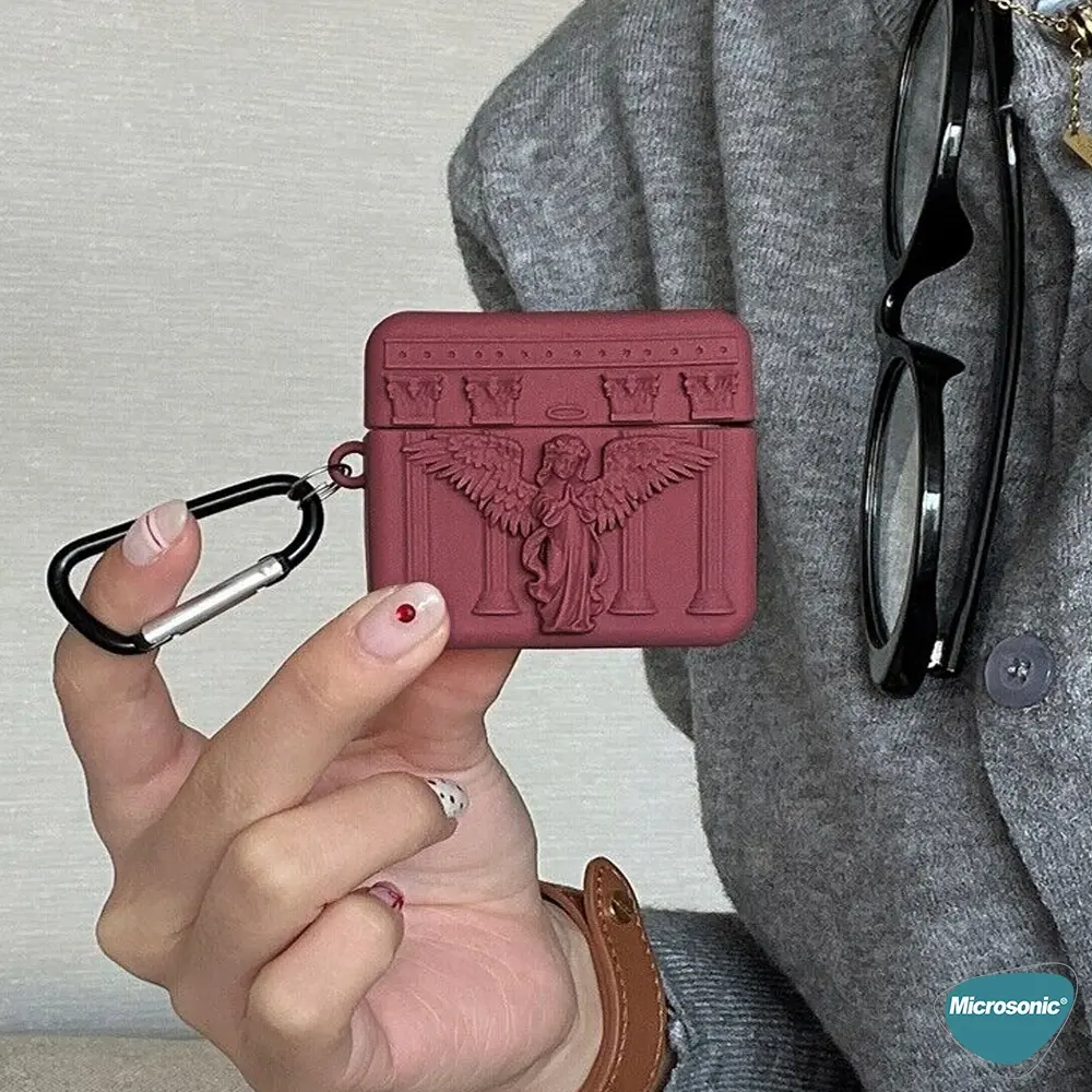 Microsonic Airpods Pro 3 Kılıf Cartoon Figürlü Silikon Praying Angel Bordo