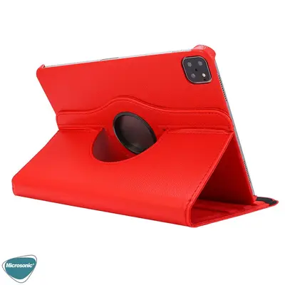 Microsonic Apple iPad Pro 13 2025 Kılıf (A3360-A3361) 360 Rotating Stand Deri Kırmızı
