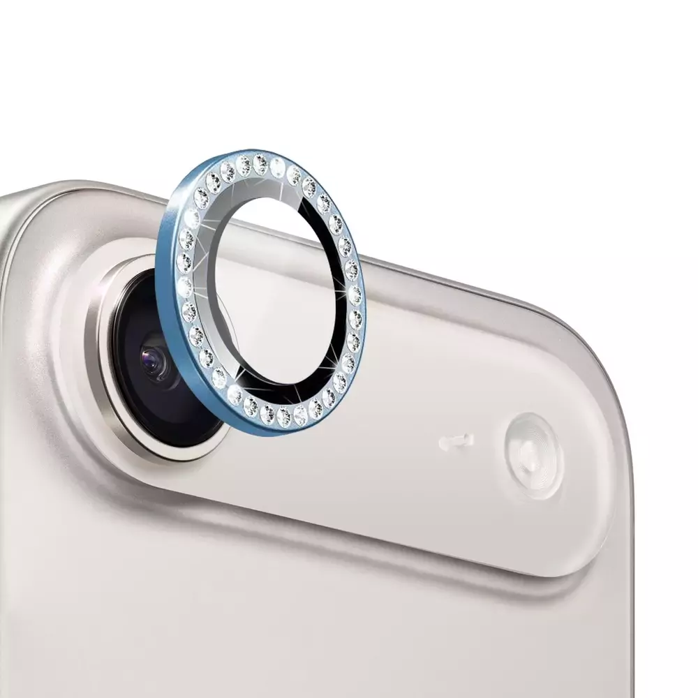 Microsonic Apple iPhone 17 Air Tekli Diamond Taşlı Kamera Koruma Camı Mavi