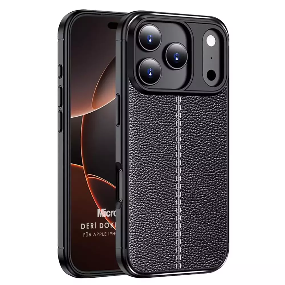 Microsonic Apple iPhone 17 Pro Kılıf Deri Dokulu Silikon Siyah