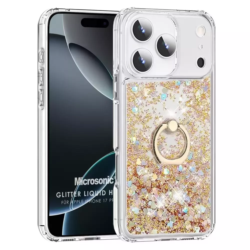 Microsonic Apple iPhone 17 Pro Kılıf Glitter Liquid Holder Gold