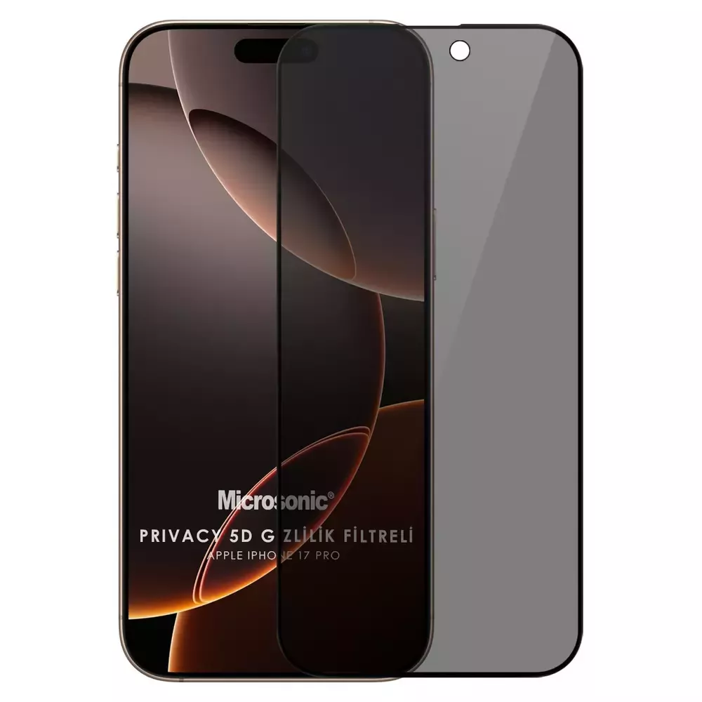 Microsonic Apple iPhone 17 Pro Privacy 5D Gizlilik Filtreli Cam Ekran Koruyucu Siyah