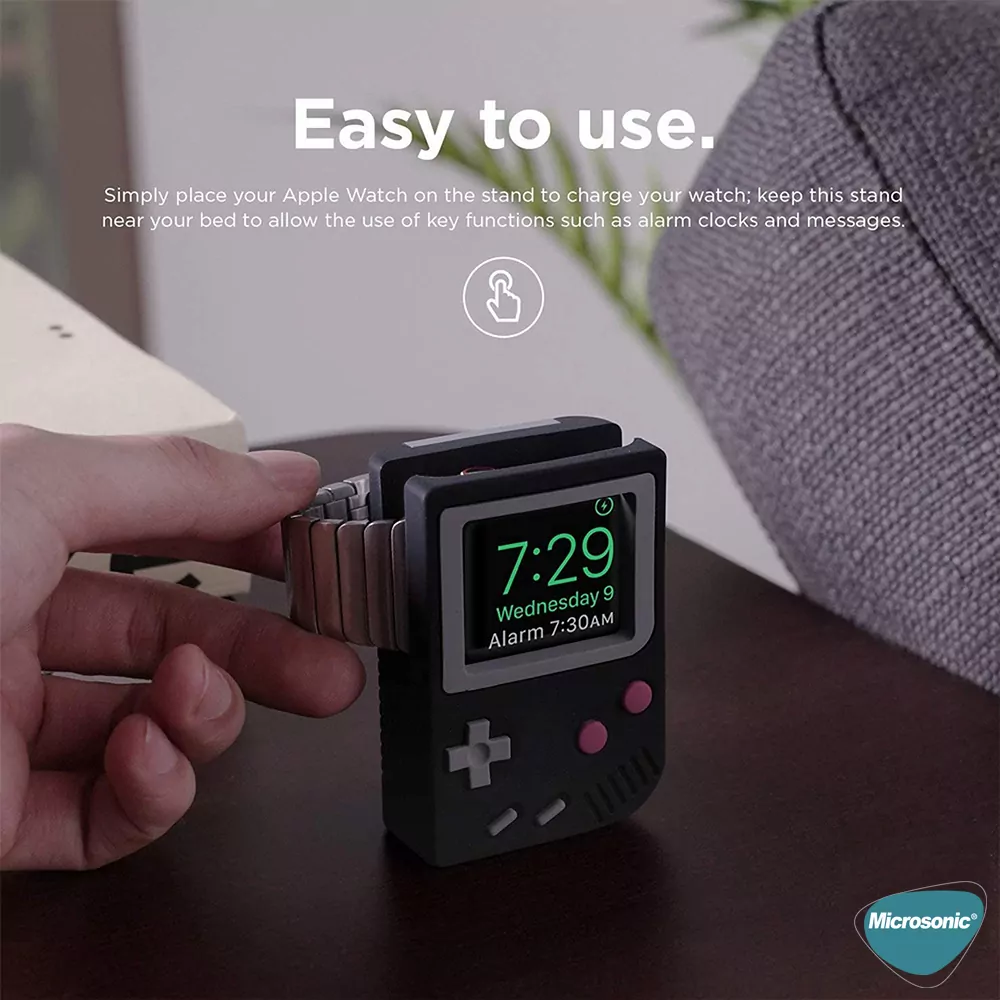 Microsonic Apple Watch 11 46mm Masaüstü Şarj Standı Gameboy Siyah
