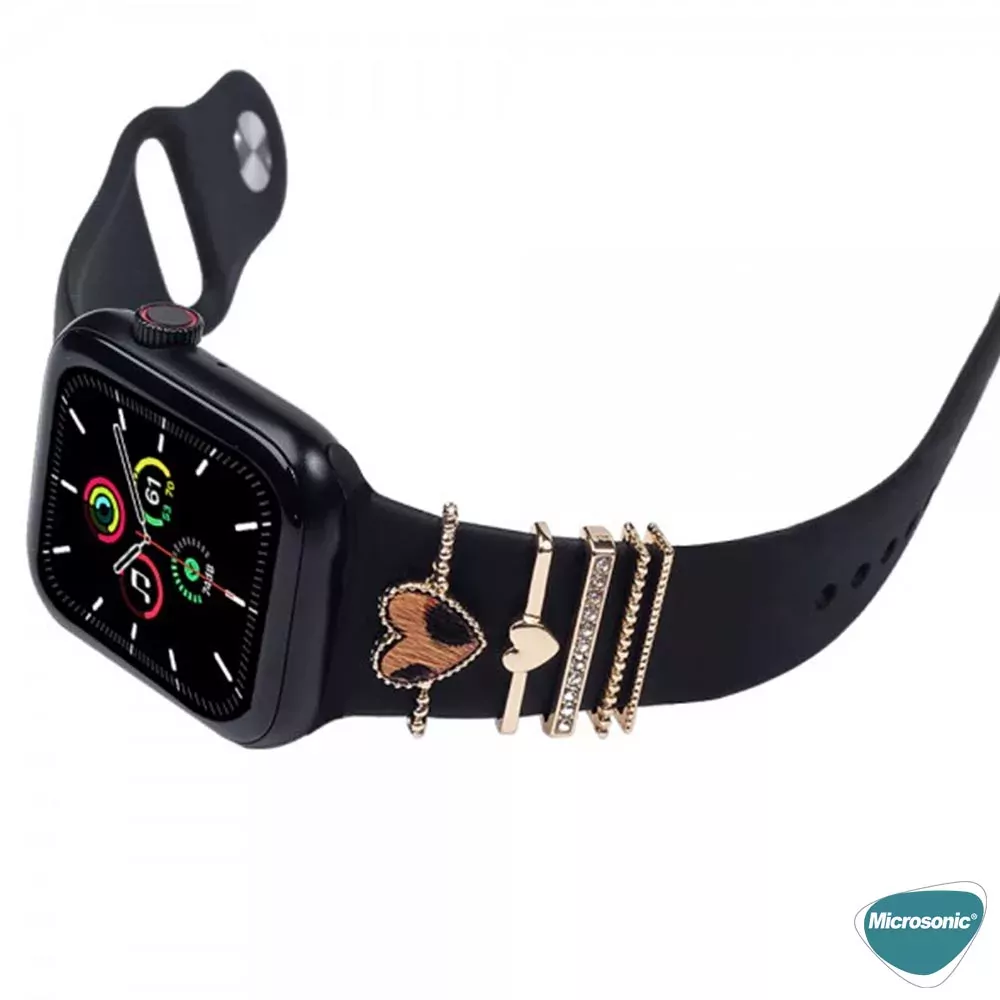 Microsonic Apple Watch SE 3 40mm Kordon Süsü Charm Hamsa ve Nazar Boncuğu
