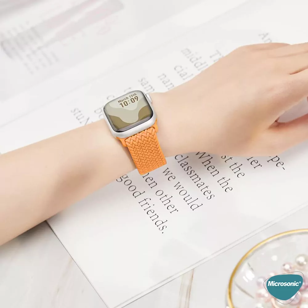 Microsonic Apple Watch SE 3 44mm Kordon, (Large Size, 160mm) Knitted Fabric Single Loop Turuncu