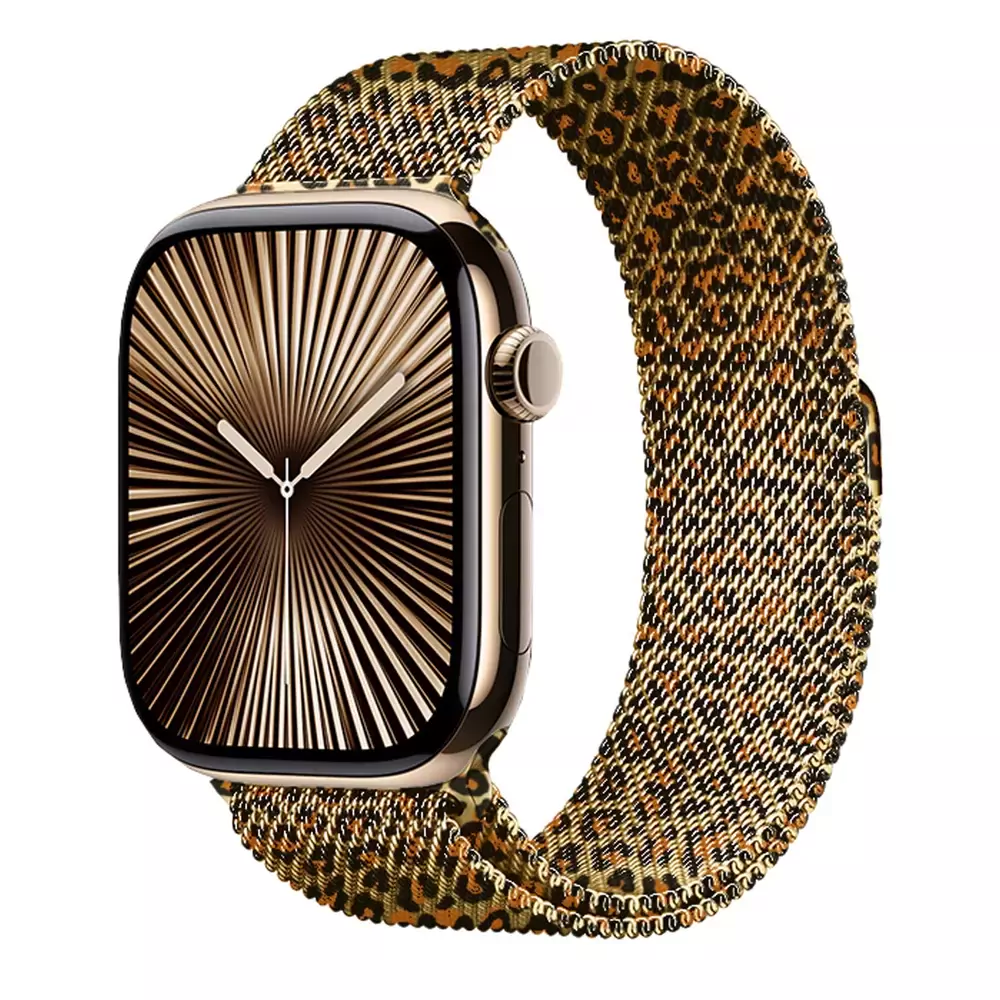 Microsonic Apple Watch SE 3 44mm Kordon Luxe Metal Leopard Gold