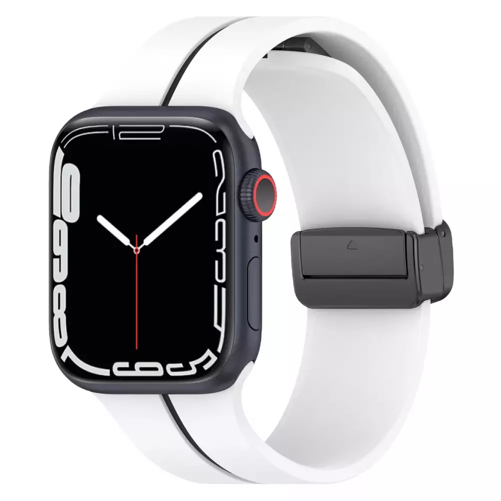 Microsonic Apple Watch SE 3 44mm Kordon Ribbon Line Beyaz Siyah