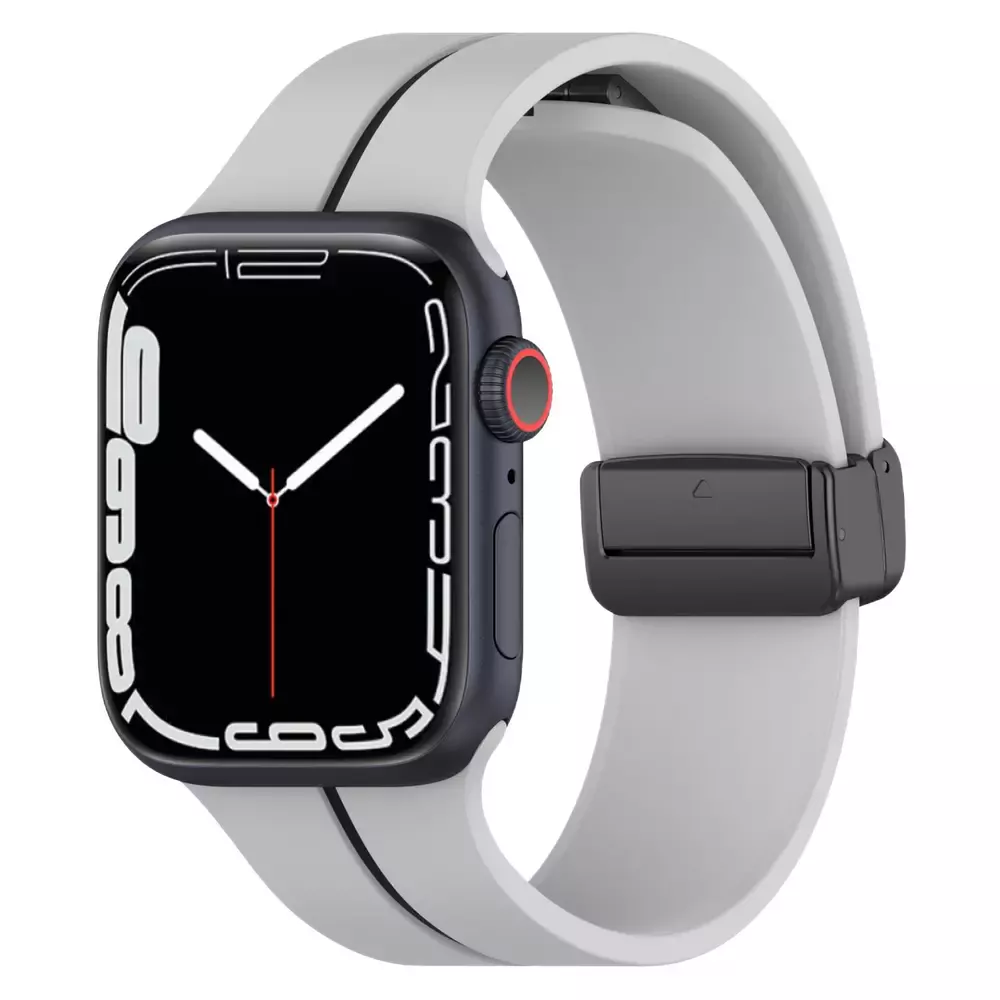 Microsonic Apple Watch SE 3 44mm Kordon Ribbon Line Gri Siyah