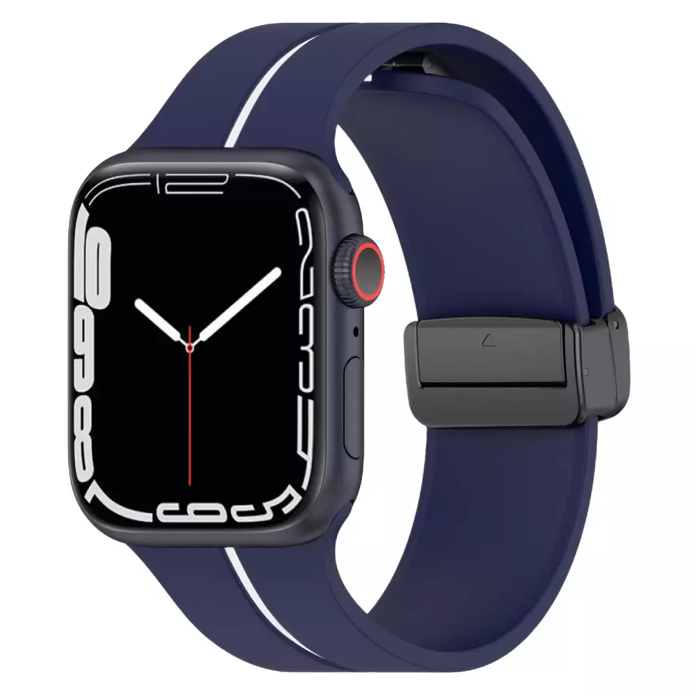 Microsonic Apple Watch SE 3 44mm Kordon Ribbon Line Lacivert Beyaz