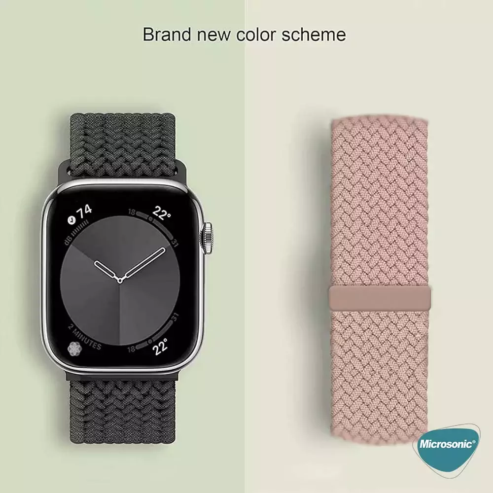 Microsonic Apple Watch Series 11 42mm Kordon, (Medium Size, 147mm) Knitted Fabric Single Loop Siyah