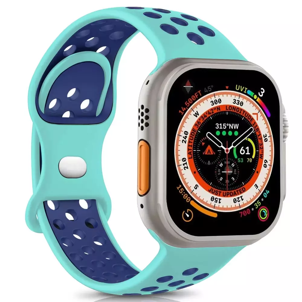 Microsonic Apple Watch Series 11 42mm Kordon Rainbow Band Yeşil Lacivert