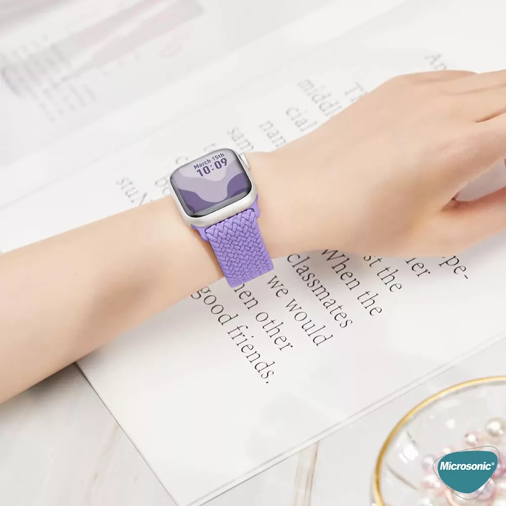 Microsonic Apple Watch Series 11 42mm Kordon, (Small Size, 127mm) Knitted Fabric Single Loop Lila