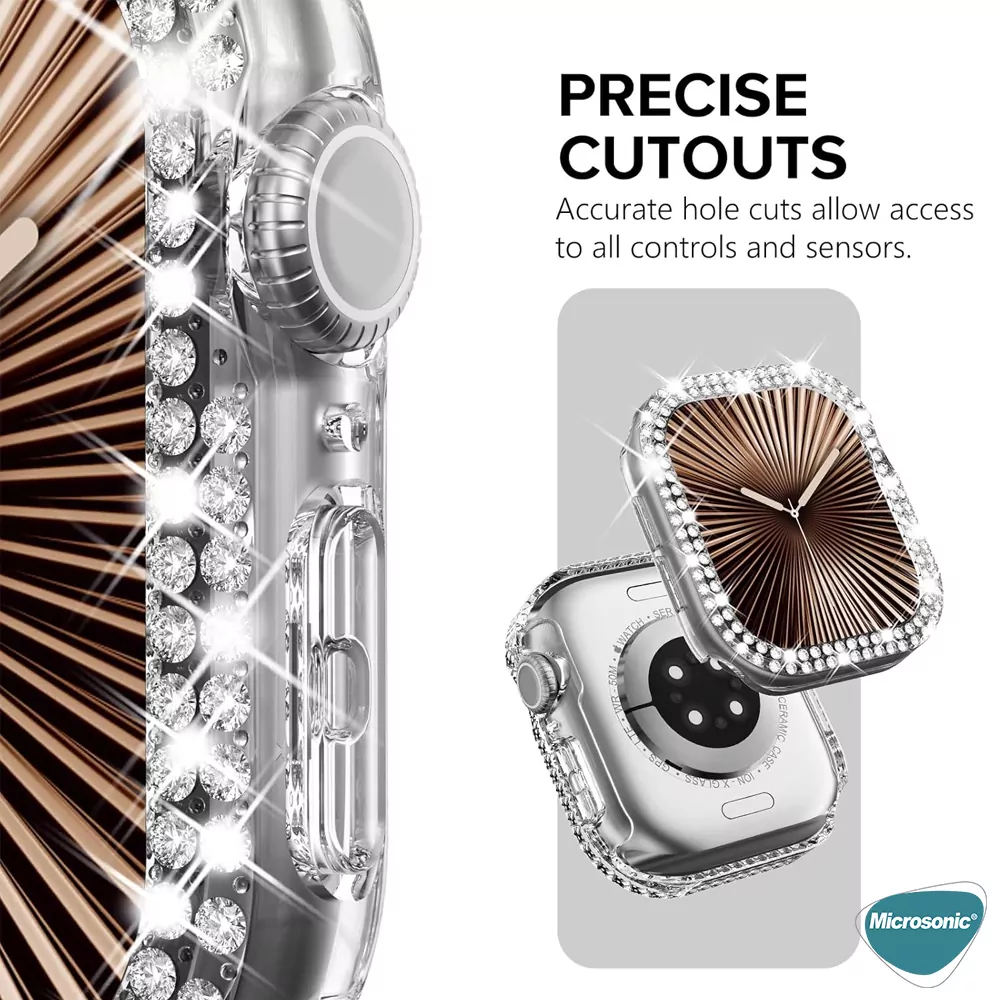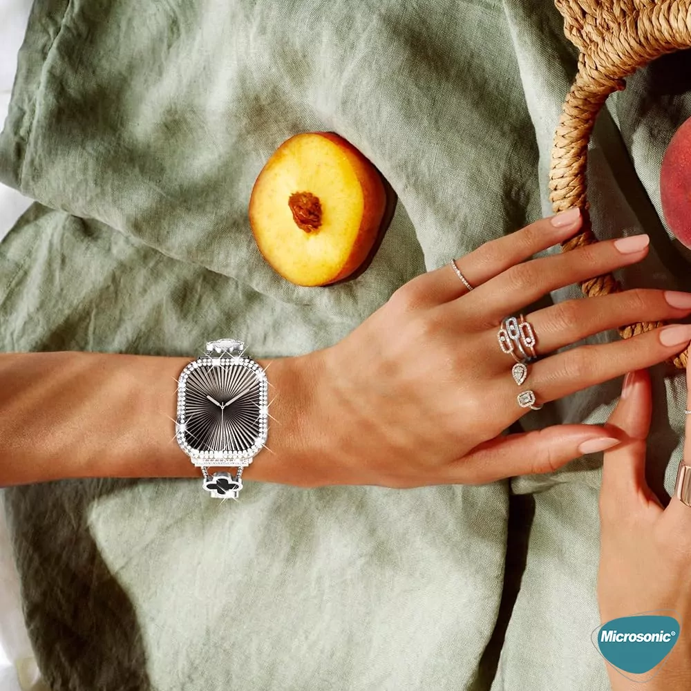 Microsonic Apple Watch Series 11 46mm Kılıf Diamond Taşlı Clear WatchBand Şeffaf