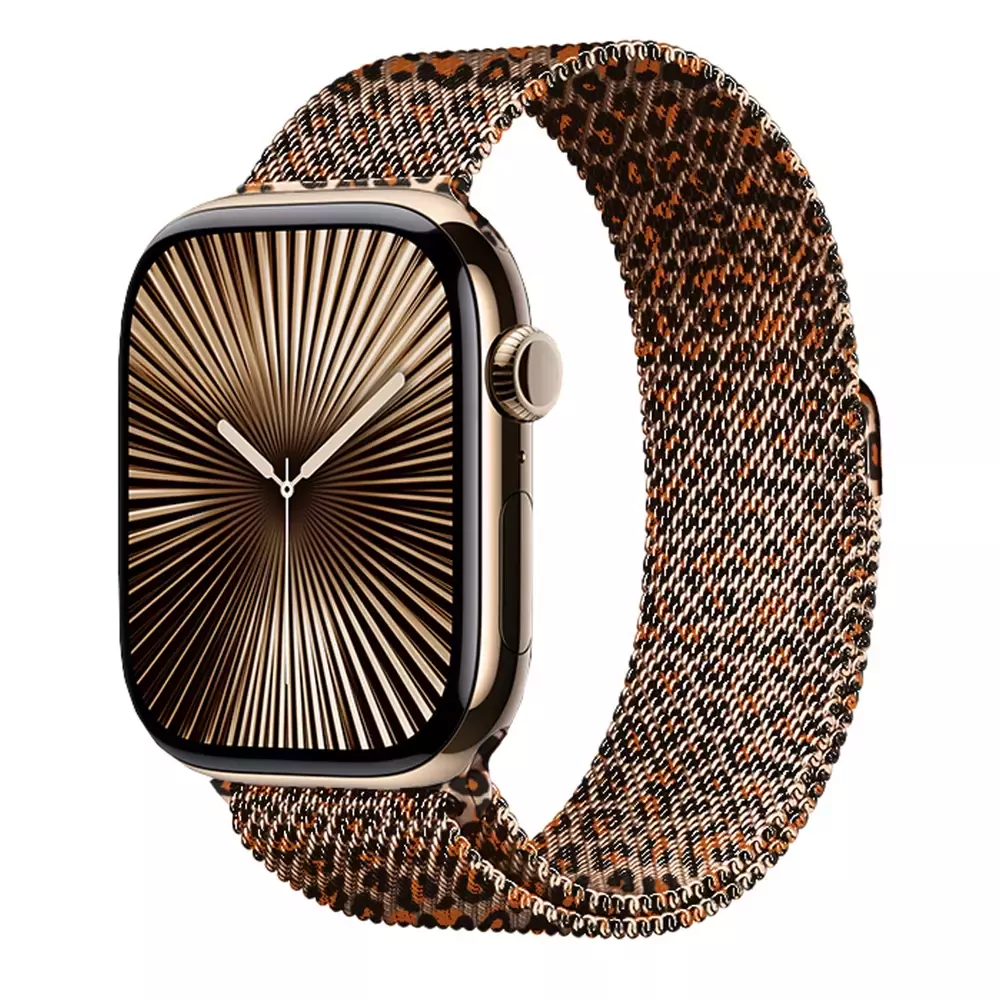 Microsonic Apple Watch Series 11 46mm Kordon Luxe Metal Leopard Rose Gold