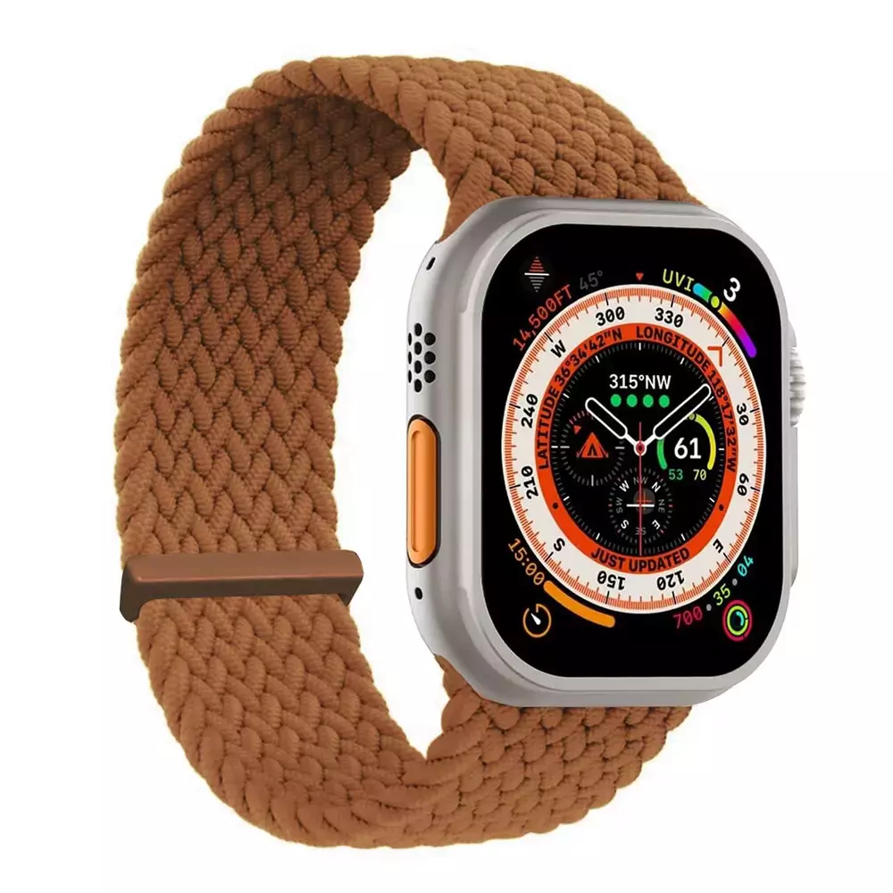 Microsonic Apple Watch Series 11 46mm Kordon, (Small Size, 127mm) Knitted Fabric Single Loop Kahverengi