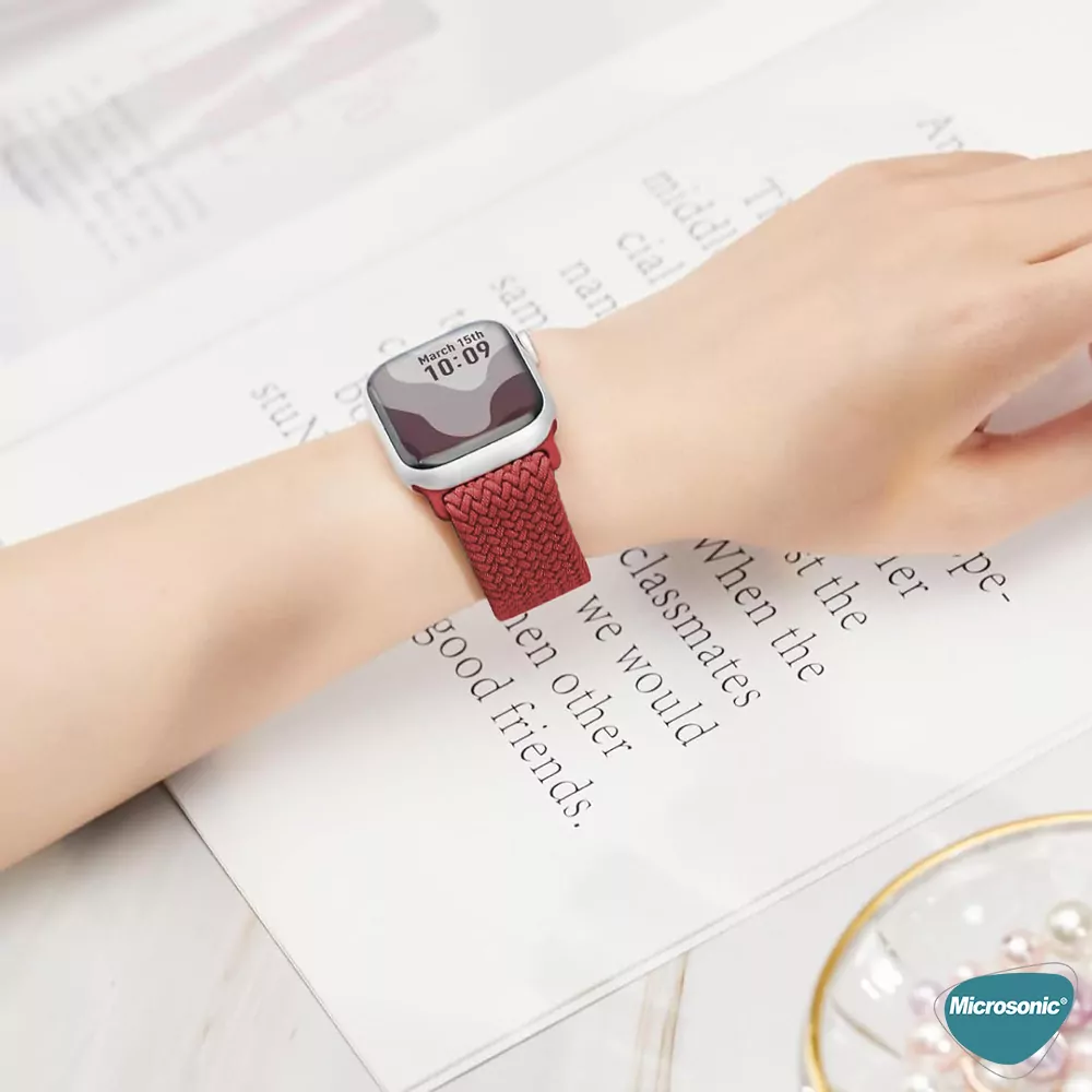 Microsonic Apple Watch Ultra 3 Kordon, (Small Size, 127mm) Knitted Fabric Single Loop Kırmızı