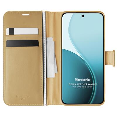 Microsonic Oppo Reno 14F 5G Kılıf Delux Leather Wallet Gold