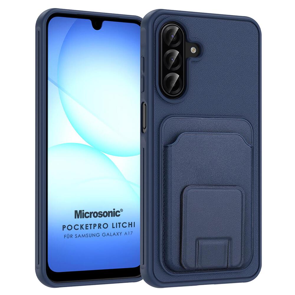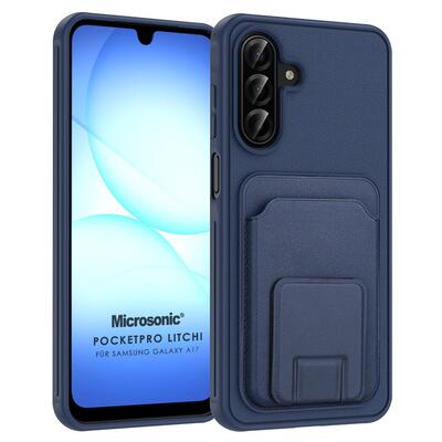 Microsonic Samsung Galaxy A17 Kılıf PocketPro Litchi Lacivert