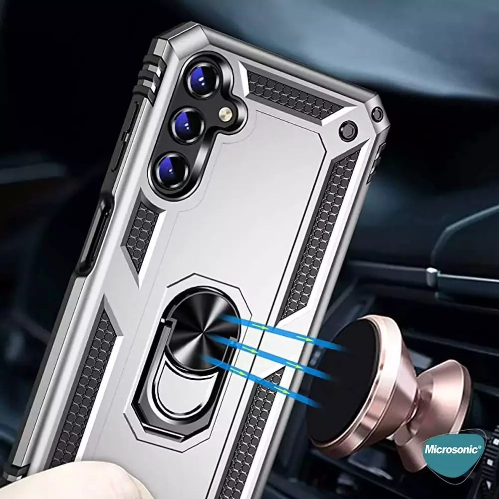 Microsonic Samsung Galaxy A24 Kılıf Military Ring Holder Gümüş