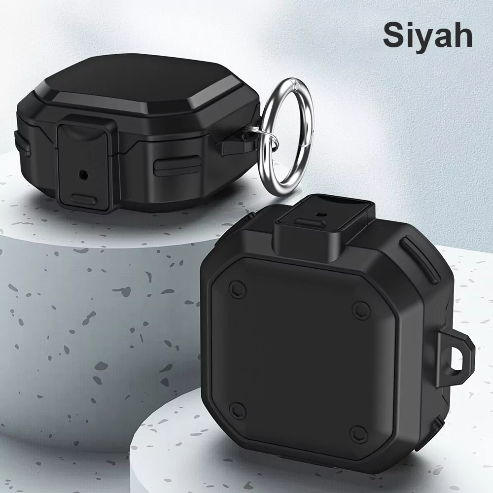 Microsonic Samsung Galaxy Buds Core Kılıf Darbeye Dayanıklı Sert Koruyucu + Askılık Siyah