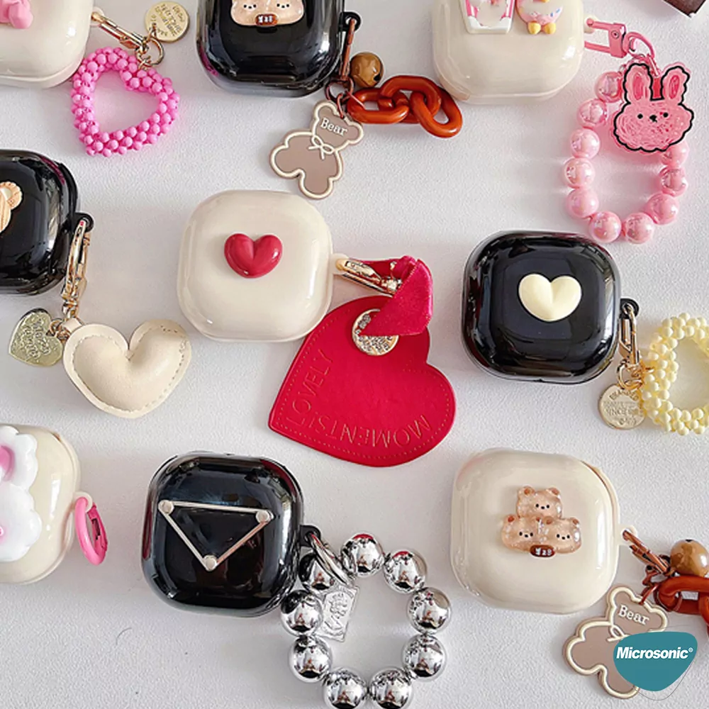 Microsonic Samsung Galaxy Buds Core Kılıf Süslü Kalp Desenli Pembe