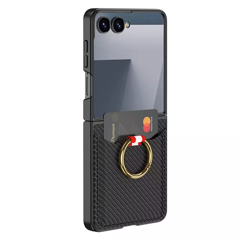 Microsonic Samsung Galaxy Z Flip 7 Kılıf LuxRing Wallet Carbon Siyah