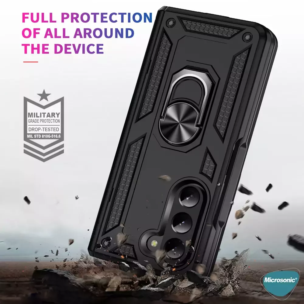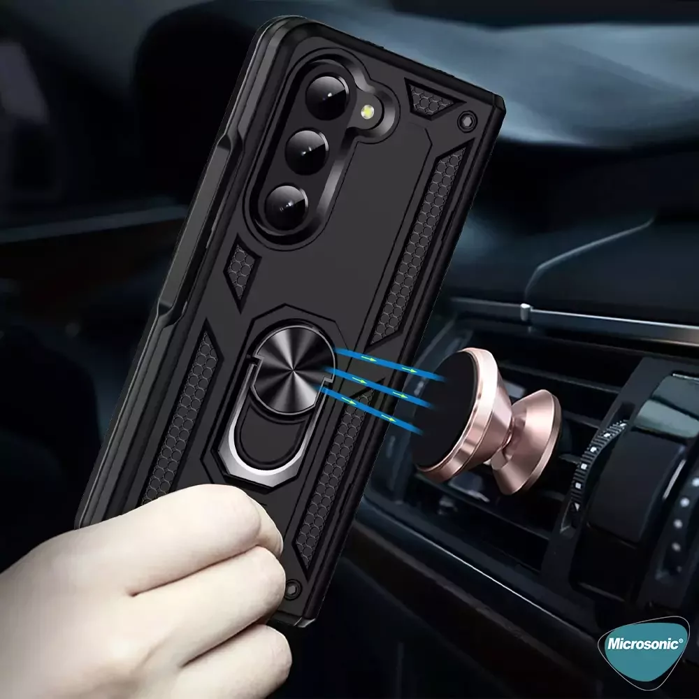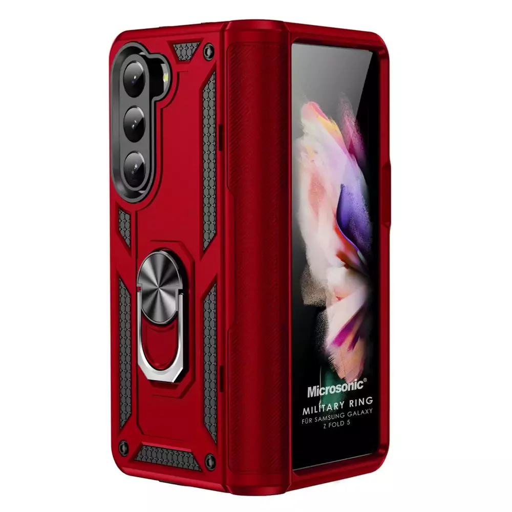 Microsonic Samsung Galaxy Z Fold 5 Kılıf Military Ring Holder Kırmızı