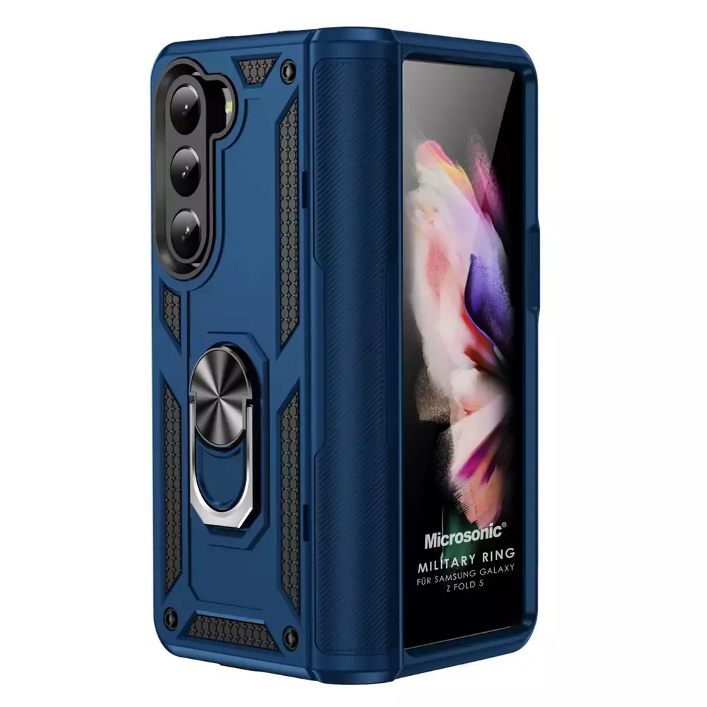 Microsonic Samsung Galaxy Z Fold 5 Kılıf Military Ring Holder Lacivert